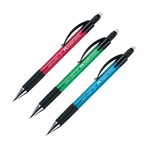 Portaminas Faber Castell Grip Matic 0,7mm x unidad, zona grip de agarre suave, forma triangular ergonómica, la mina avanza automáticamente.